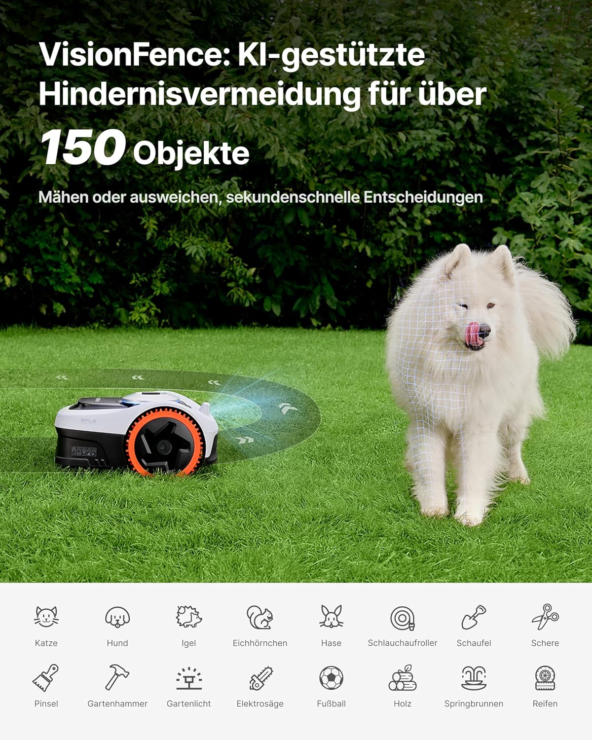Der NAVIMOW i205 AWD kombiniert automobile Sicherheitstechnologie mit modernster Gartenpflege. Dank seines intelligenten Allradantriebs und der kabellosen EFLS-Navigation meistert er Flächen bis zu 500 m² absolut souverän. Ob steile Hänge, raues Gelände oder verwinkelte Passagen – der i205 AWD liefert ein perfektes Schnittbild, ganz ohne die Installation von Begrenzungskabeln.