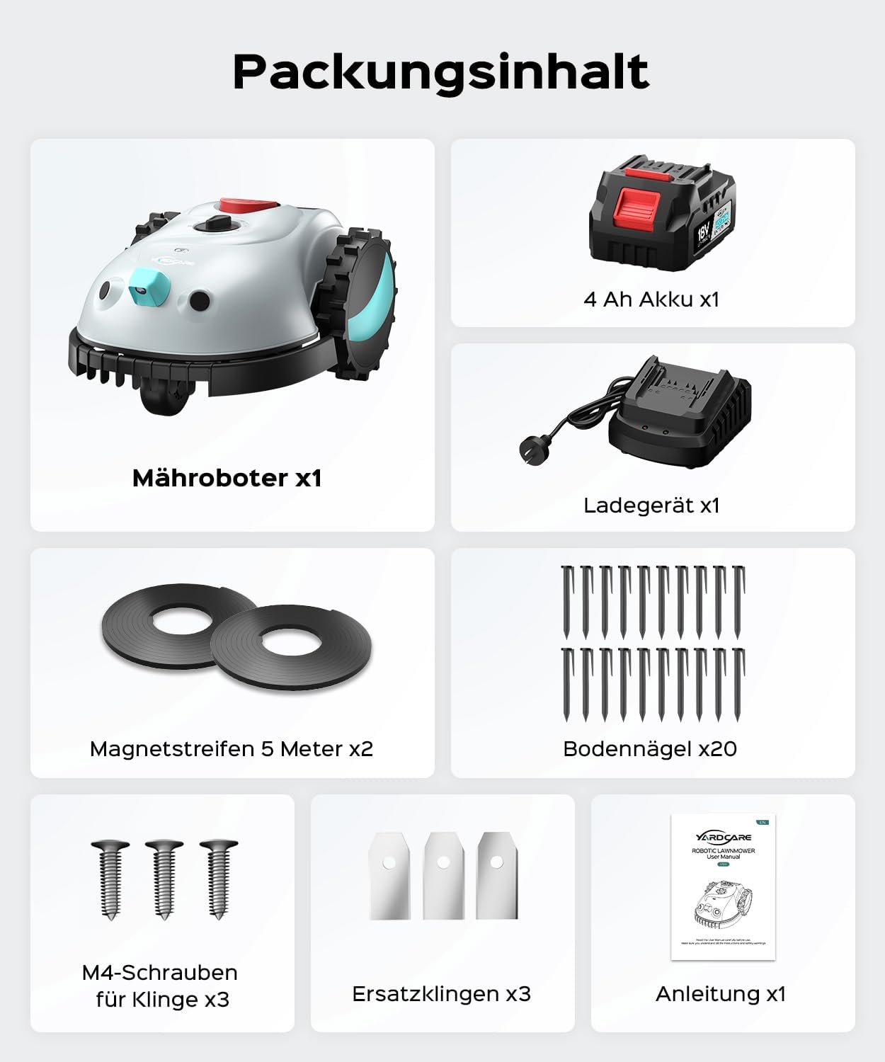 Der YARDCARE V100 ist die stressfreie Lösung für einen perfekt gepflegten Garten. Dank modernster visueller Sensoren und leistungsstarker KI benötigt dieser Mähroboter keine aufwendige Installation von Begrenzungskabeln. Einfach auspacken, laden und zusehen, wie er Ihren Rasen präzise und vollautomatisch in Form bringt.